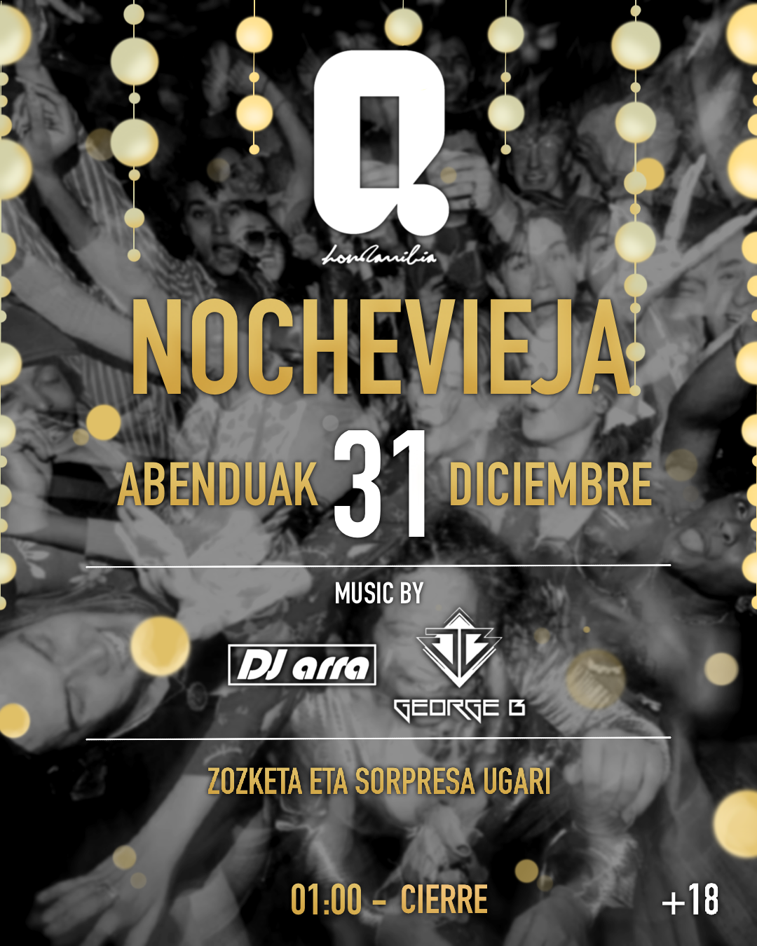 Este 31 de diciembre, la discoteca Q Hondarribia se transforma para ofrecerte una Nochevieja inolvidable llena de música y diversión sin límites.